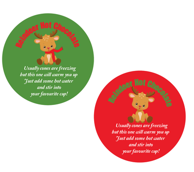 42 hot chocolate reindeer cone labels