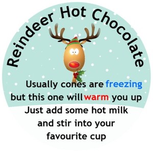 Hot chocolate reindeer cone labels