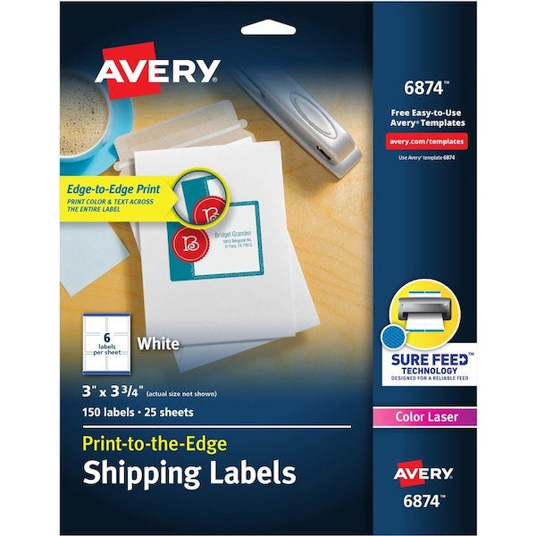 Avery® TrueBlock® Shipping Labels, Sure Feed™ Technology, Permanent Adhesive, 3-1/3" x 4", 150 Labels (8164)